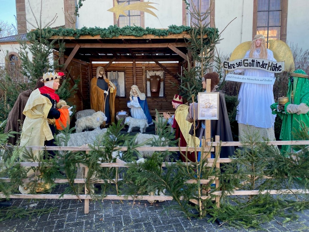 Seitdem sorgen örtliche Helfer und Mitglieder der Männersportgruppe des Turnvereins für die Aufstellung und den Erhalt der Außenkrippe in Kübelberg.